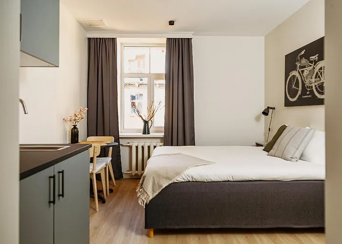 Obiekt noclegowy oferuje pełnowymiarową kuchnię oraz miejsce do jedzenia, gdzie można delektować się posiłkami. Goście mogą delektować się daniami kuchni europejskiej w restauracji Restaurant TORERO, która znajduje się w 500 metrach. Przystanek autobusowy Lacplesa iela jest w 100 metrach.